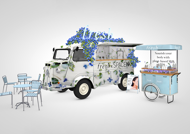 One of many projects I have been involved in for a promo vehicle hire company this Cotroen H Van concept went thru many iterations before the final option was chosen. The H Van model was purchased from turbo squid and needed some work to split out the panels and create the inside. I couldn’t find an existing model of the milk float so had to build that one from scratch. I also purchased the base cart model but that needed a lot of extra work to add all the bottles and transparent flower bath. As you can see from the real world snaps the client went with the blue van option. In this instance I just had to supply the visuals but I quite often supply 3d elements which are 3d printed and vinyl wrapped or painted.