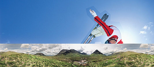 In the main image here I even managed to sneak in one of my own panoramic images of the cairngorm mountain range which I inverted and brightened up to make it appear as a snowy backdrop.
